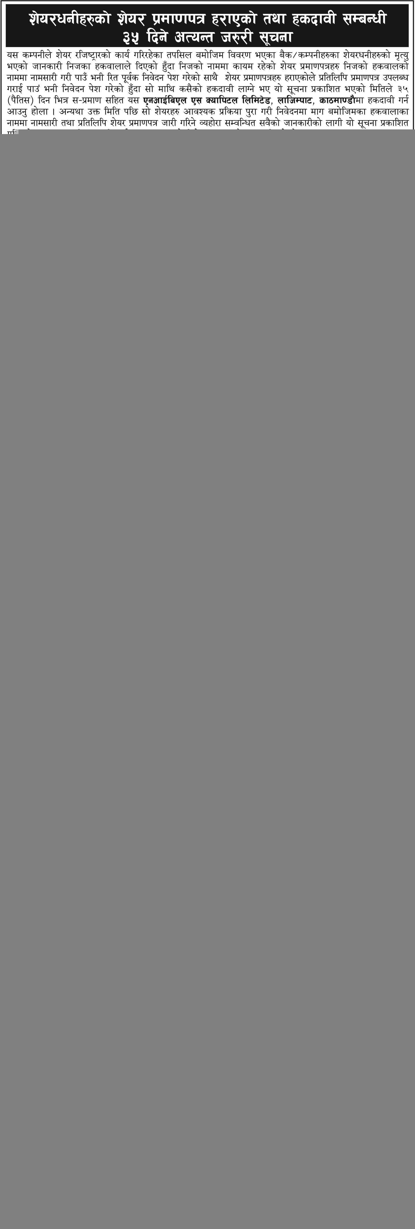 शेयर प्रमाण-पत्रको लागि हकदावीको सूचना