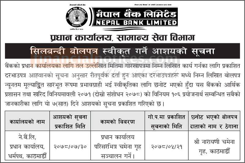 शिलबन्धी बोलपत्र स्वीकृत गर्ने आशयको सूचना