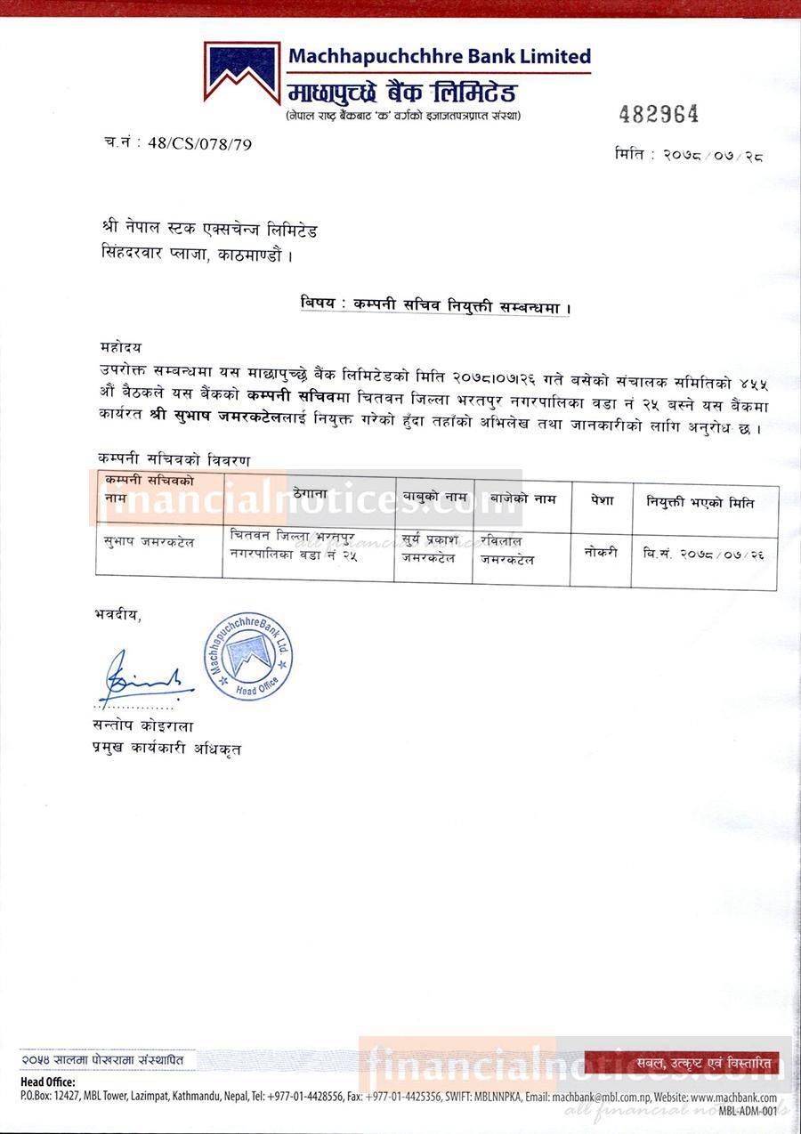 कम्पनी सचिव नियुक्ति गरिएको सम्बन्धी सूचना