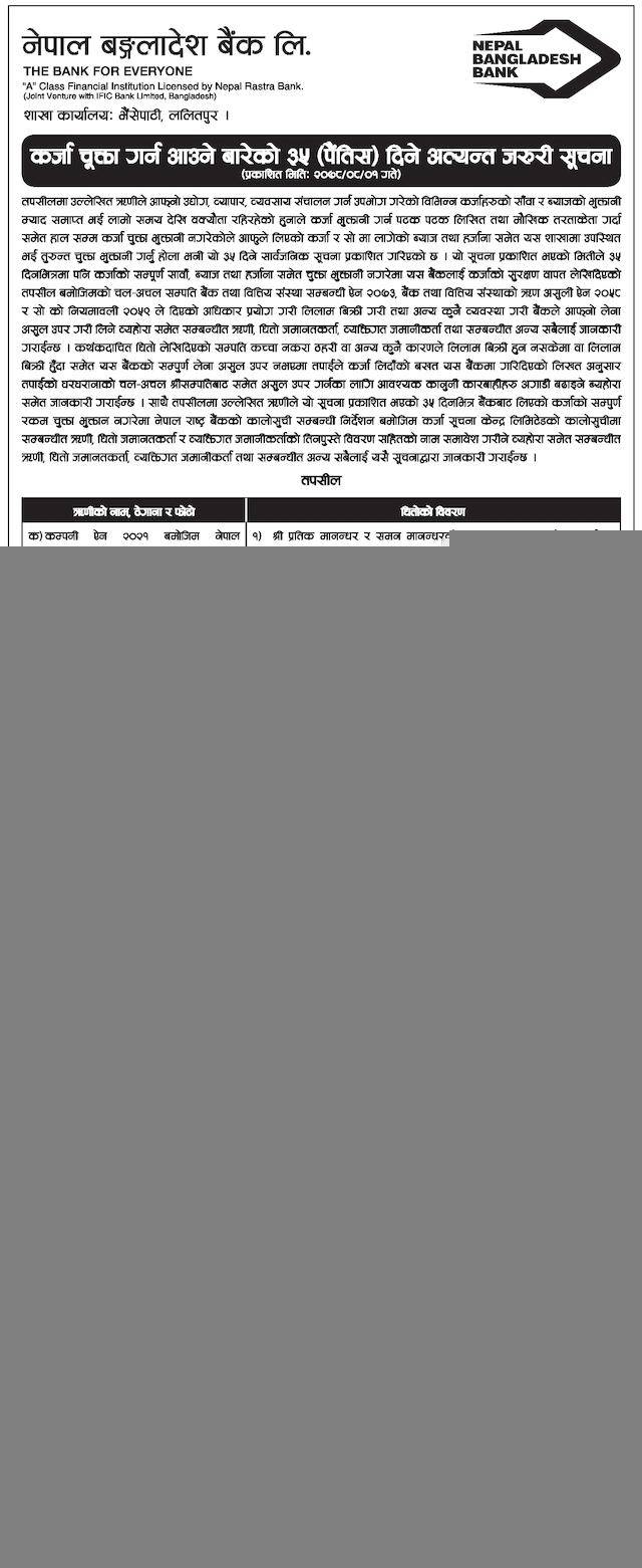 कर्जा चुक्ता गर्न आउनेबारेको ३५ दिने अत्यन्त जरुरी सूचना