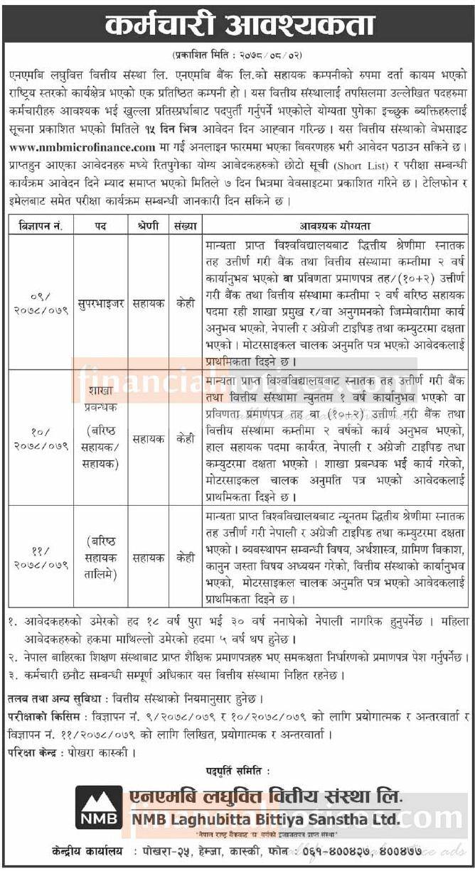 लघुवित्तमा कर्मचारी आवश्यकता - JOB VACANCY -