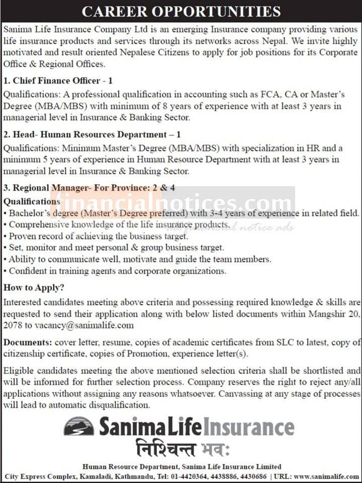 इन्स्योरेन्समा कर्मचारी आवश्यकता - JOB VACANCY -