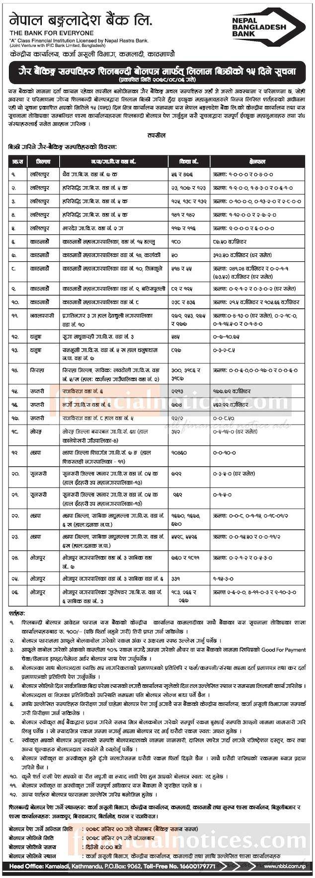 गैर बैंकिङ्ग सम्पत्तिहरु शिलबन्दी बोलपत्र मार्फत लिलाम बिक्रीको १५ दिने सूचना