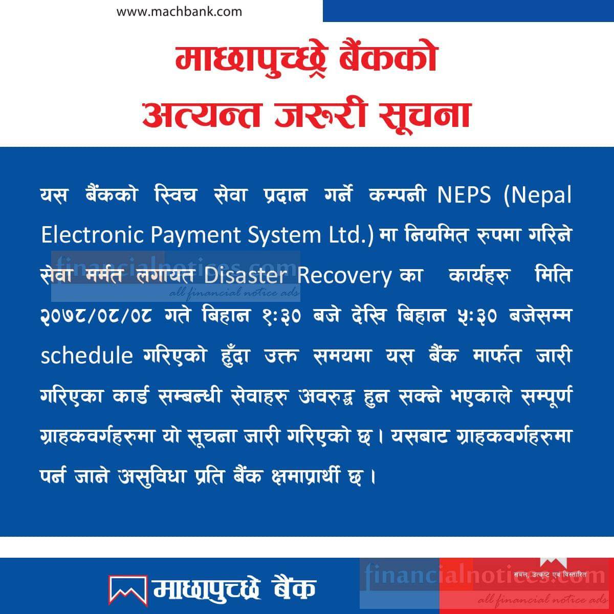 माछापुच्छ्रे बैंकको जरुरी सूचना !