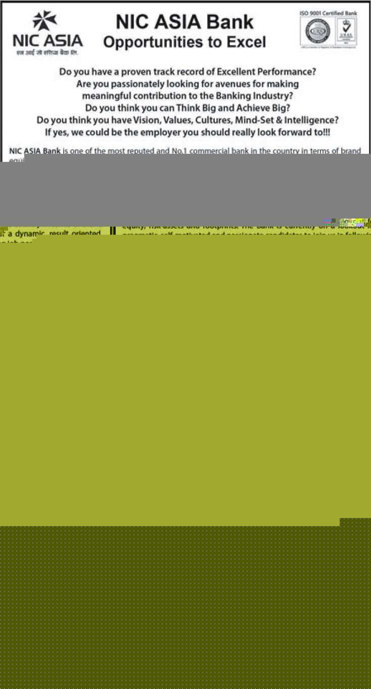 एन आई सी एशिया बैङ्कको ७ वटै प्रदेशमा कर्मचारी आवश्यकता