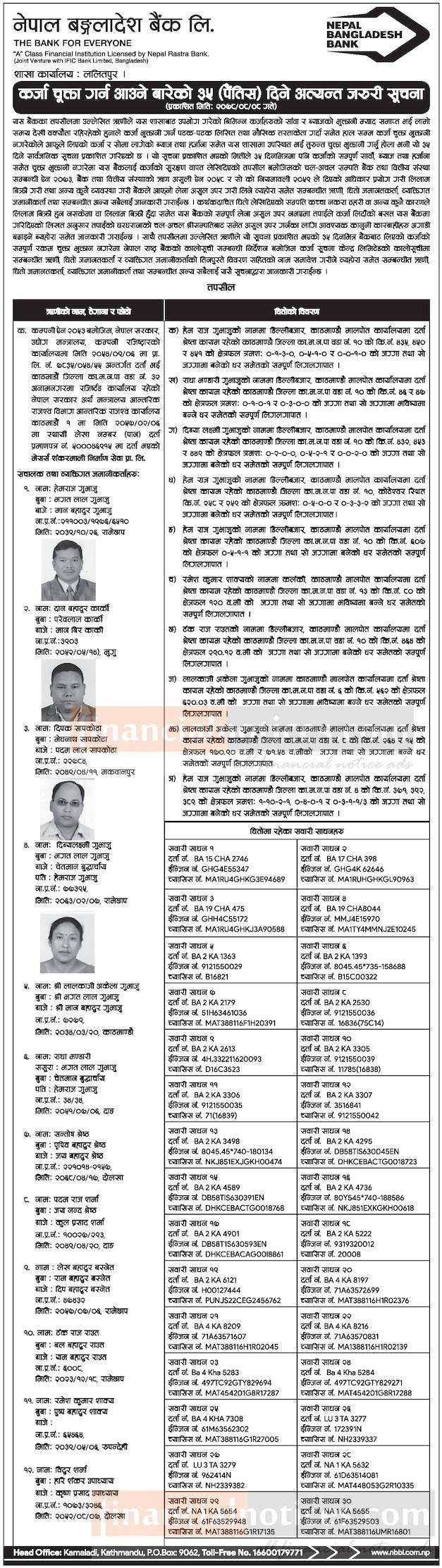 कर्जा चुक्ता गर्न आउने बारेको ३५ दिने जरुरी सूचना