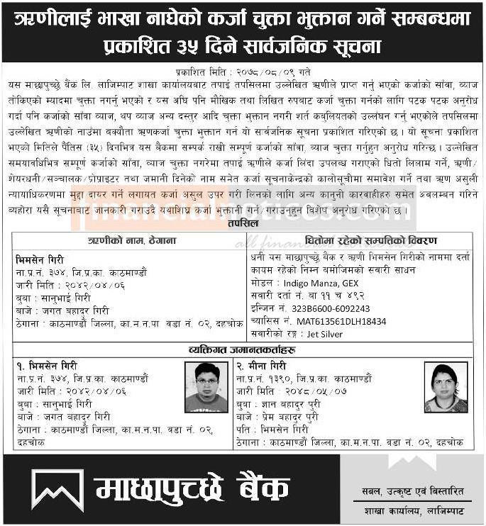 Published by Machhapuchhre Bank on 2078-8-09