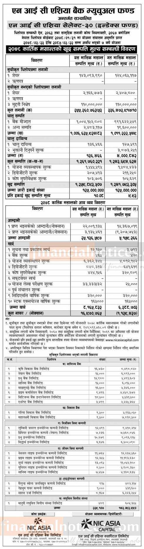 NIC Asia Capital has published 'NIC Asia Select-30 : Index Fund' Net Assets Value Up to Kartik, 2078