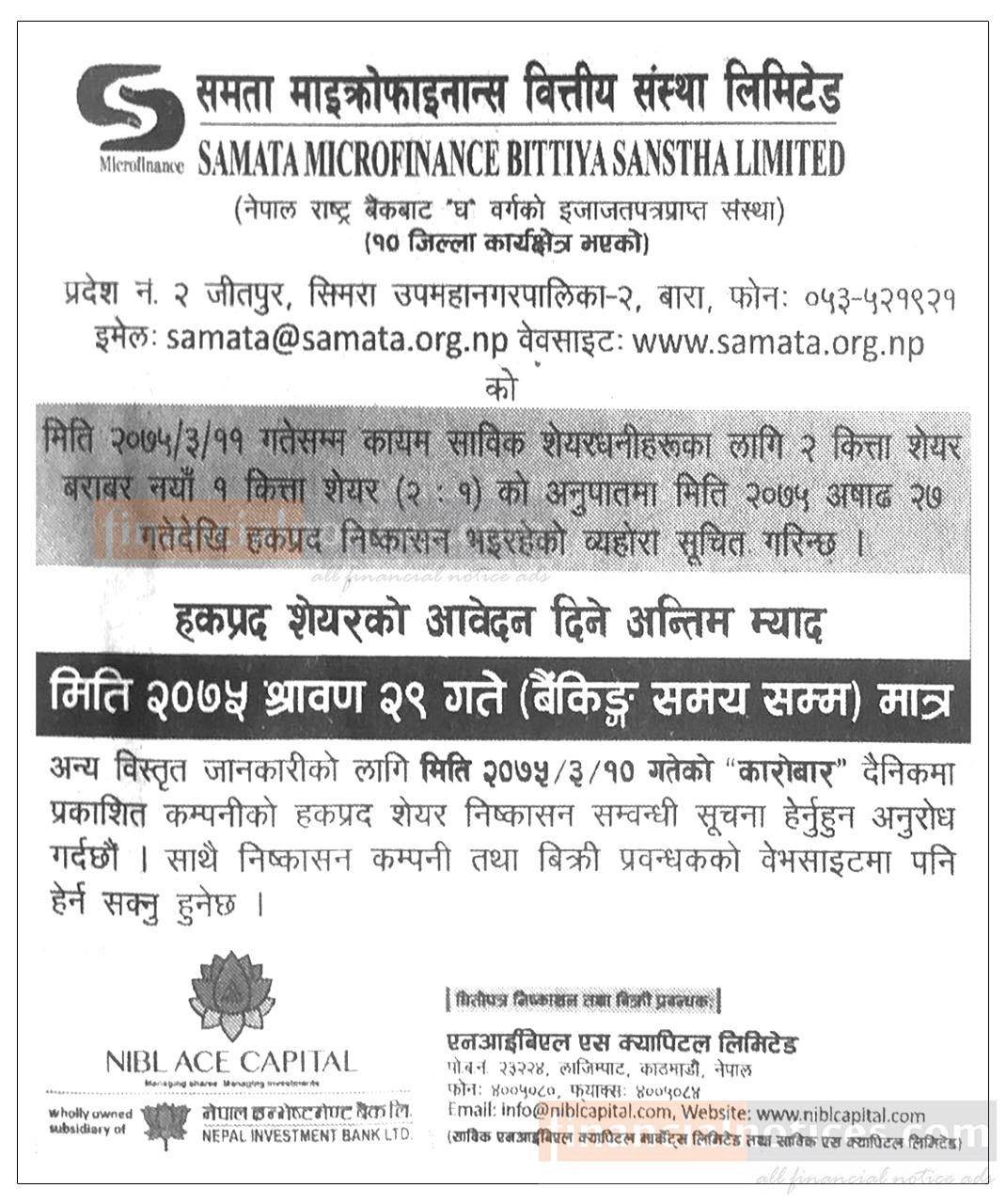 हकप्रद शेयरको आवेदन दिने अन्तिम म्याद
