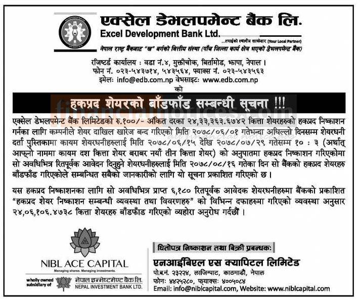 एक्सेल डेभलपमेन्ट बैंकको हकप्रद शेयरको बाँडफाँड सम्बन्धी सूचना