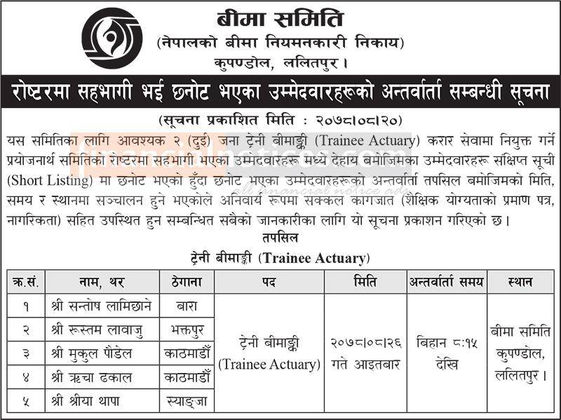 रोष्टरमा सहभागी भई छनोट भएका उम्मेदवारहरुको अन्तर्वार्ता सम्बन्धी सूचना