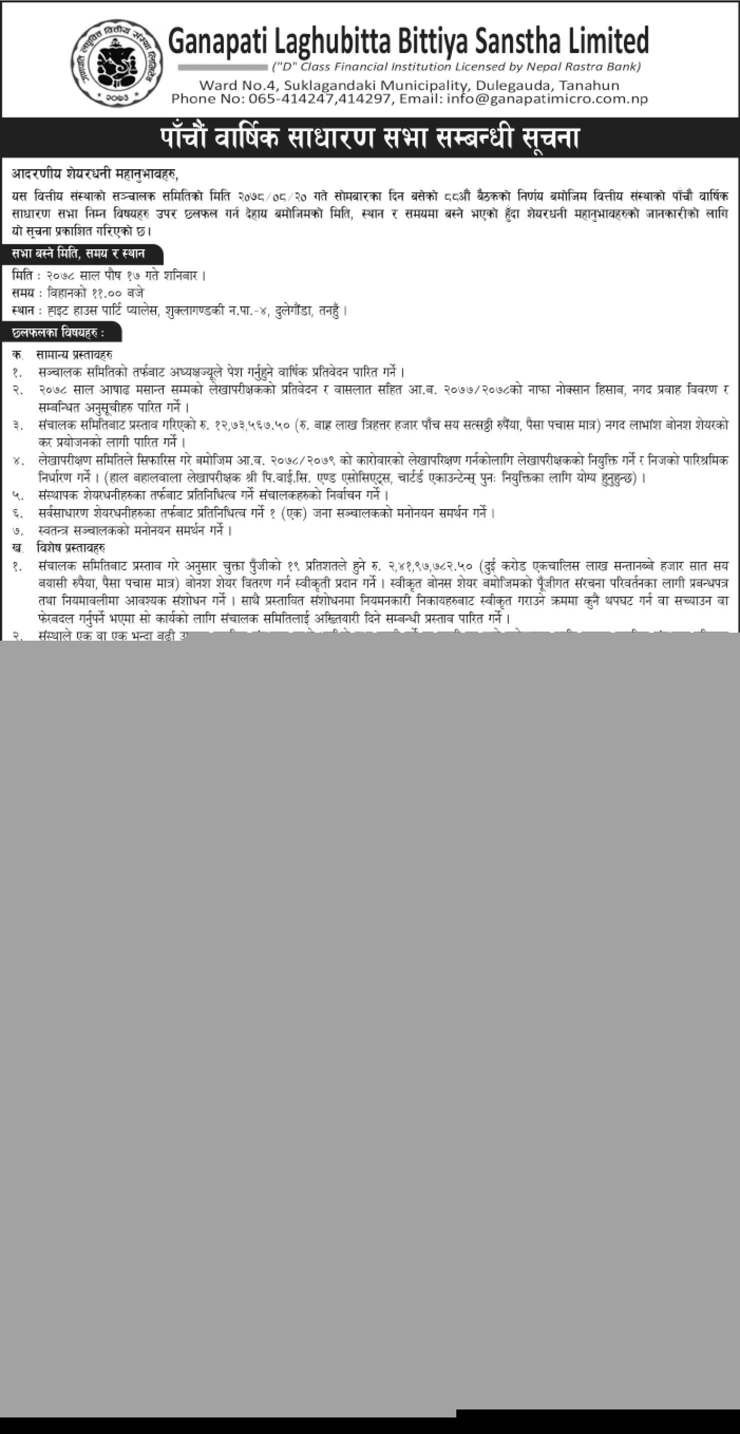 पाँचौ वार्षिक साधारणसभा सम्बन्धी सूचना