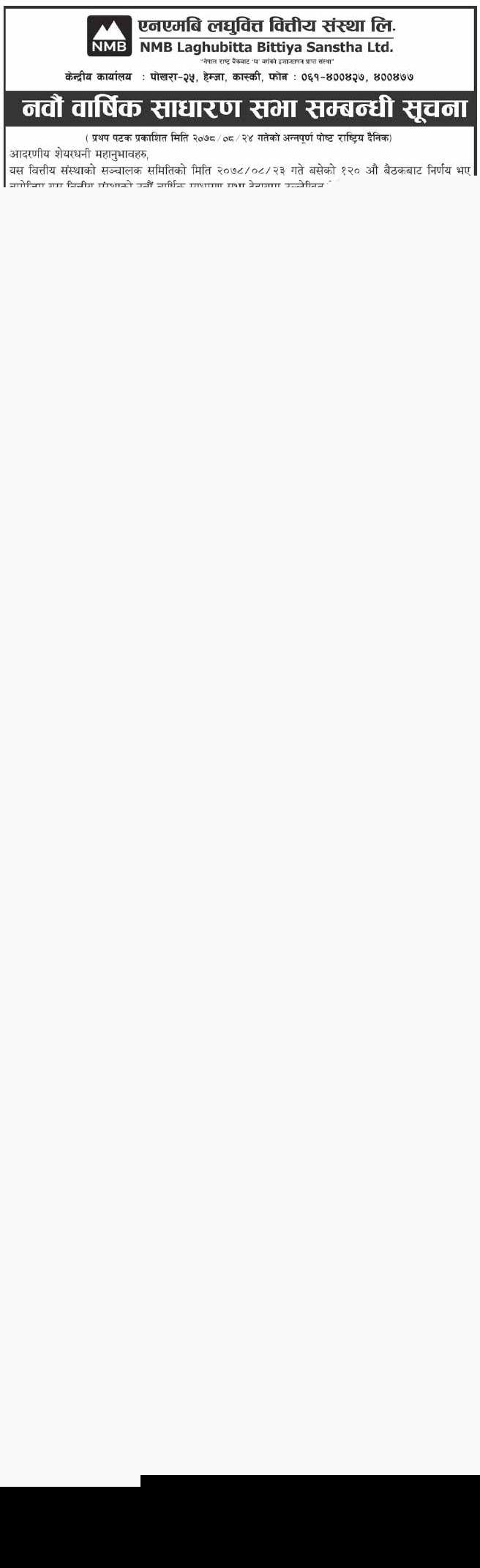 एनएमबि लघुवित्तको नवौं वार्षिक साधारण सभा सम्बन्धी सूचना