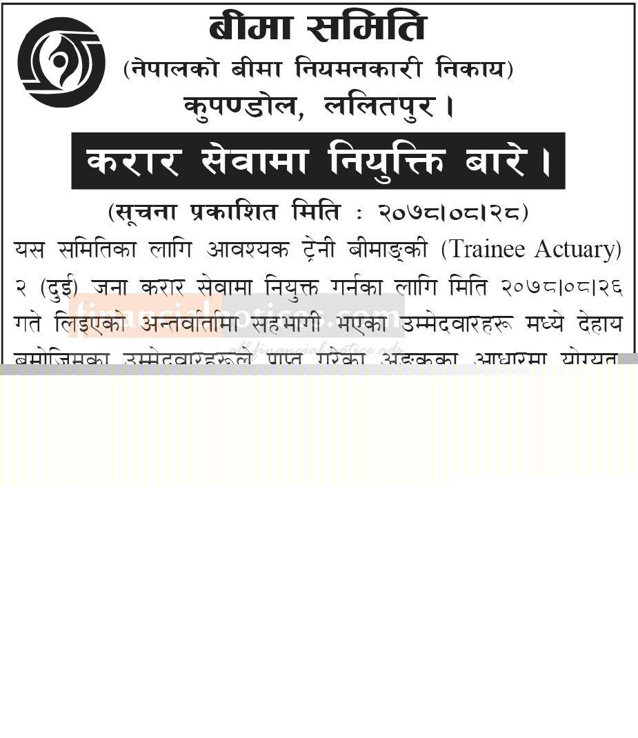 बीमा समितिको करार सेवामा नियक्ति बारे सूचना