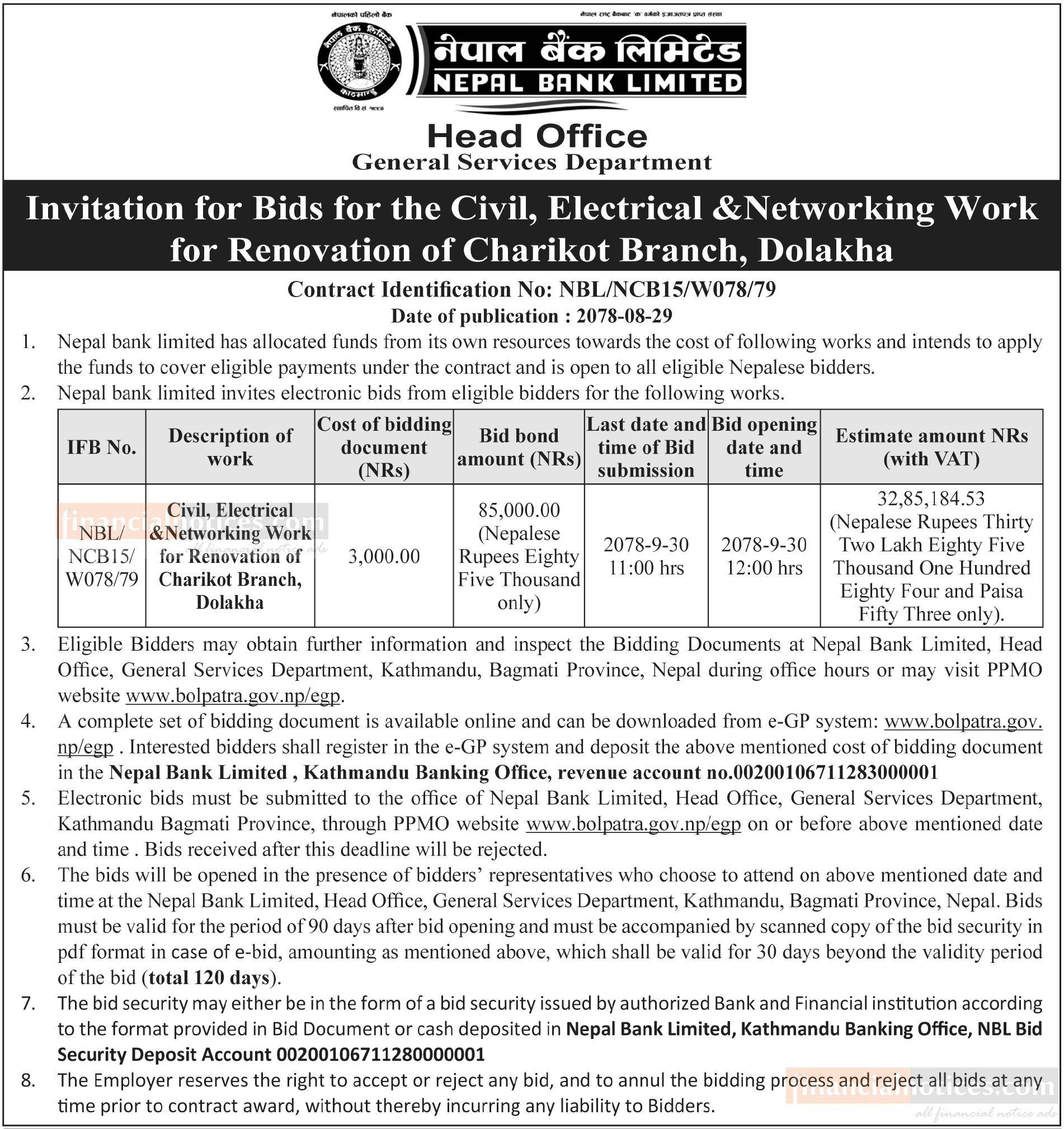 Invitation for Bids for the Civil, Electrical and Networking Work