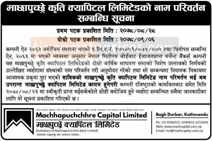 माछापुच्छ«े क्यापिटलको नाम परिवर्तन सम्बन्धी सूचना