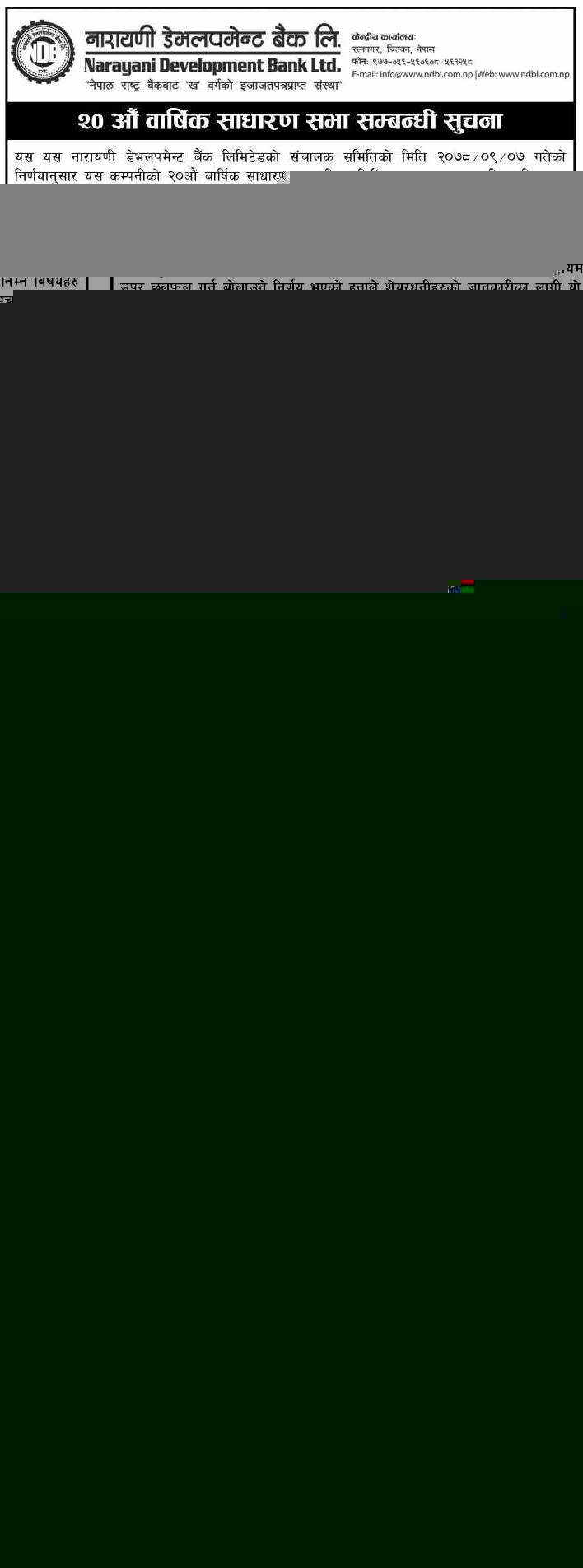 नारायणी डेभलपमेन्ट बैंकको २० औं वार्षिक साधारण सभा सम्बन्धी सूचना