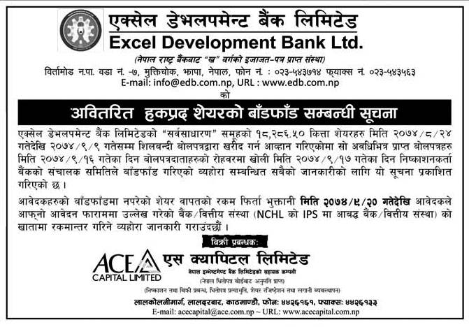 Published by Excel Dev. Bank Annapurna Post on 2074-9-19