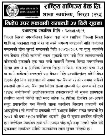 Nepal SBI Bank: Auction Notice for Non-Banking Assets at Geta-2, Kailali