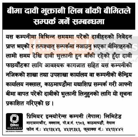 बीमा दावी भुक्तानी लिन बाँकी बीमितले सम्पर्क गर्ने सम्बन्धी सूचना