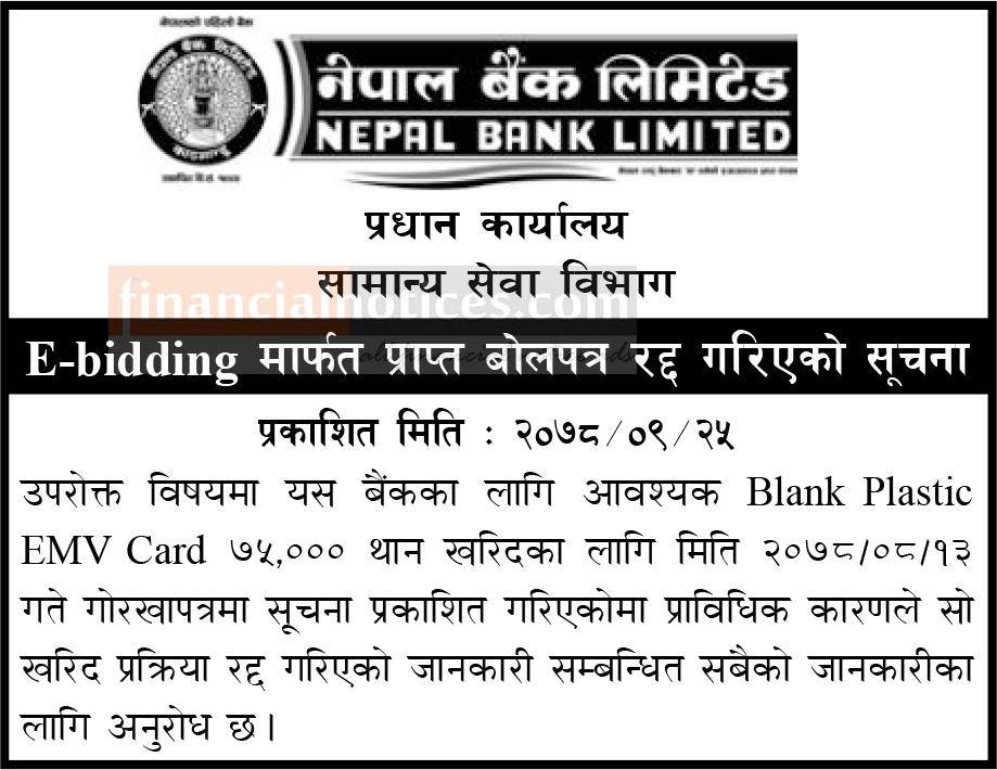 E-bidding मार्फत प्राप्त बोलपत्र रद्ध गरिएको सूचना