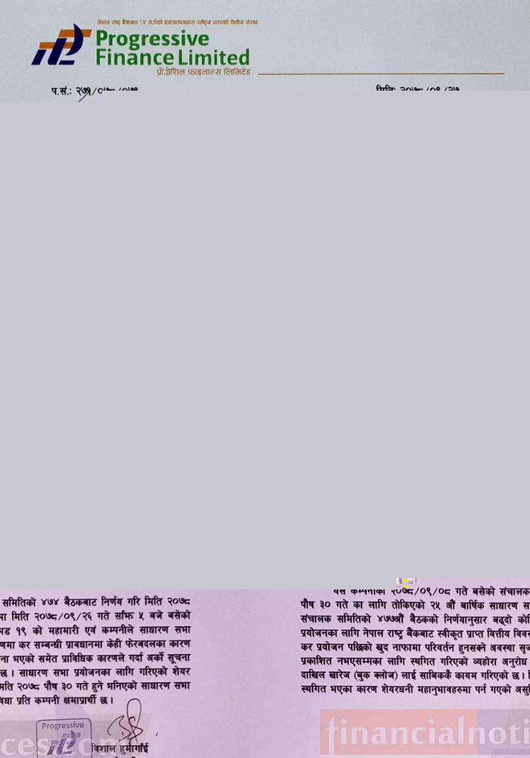 प्रोग्रेसिभ फाइनान्सको साधारण सभा स्थगित सम्बन्धी सूचना