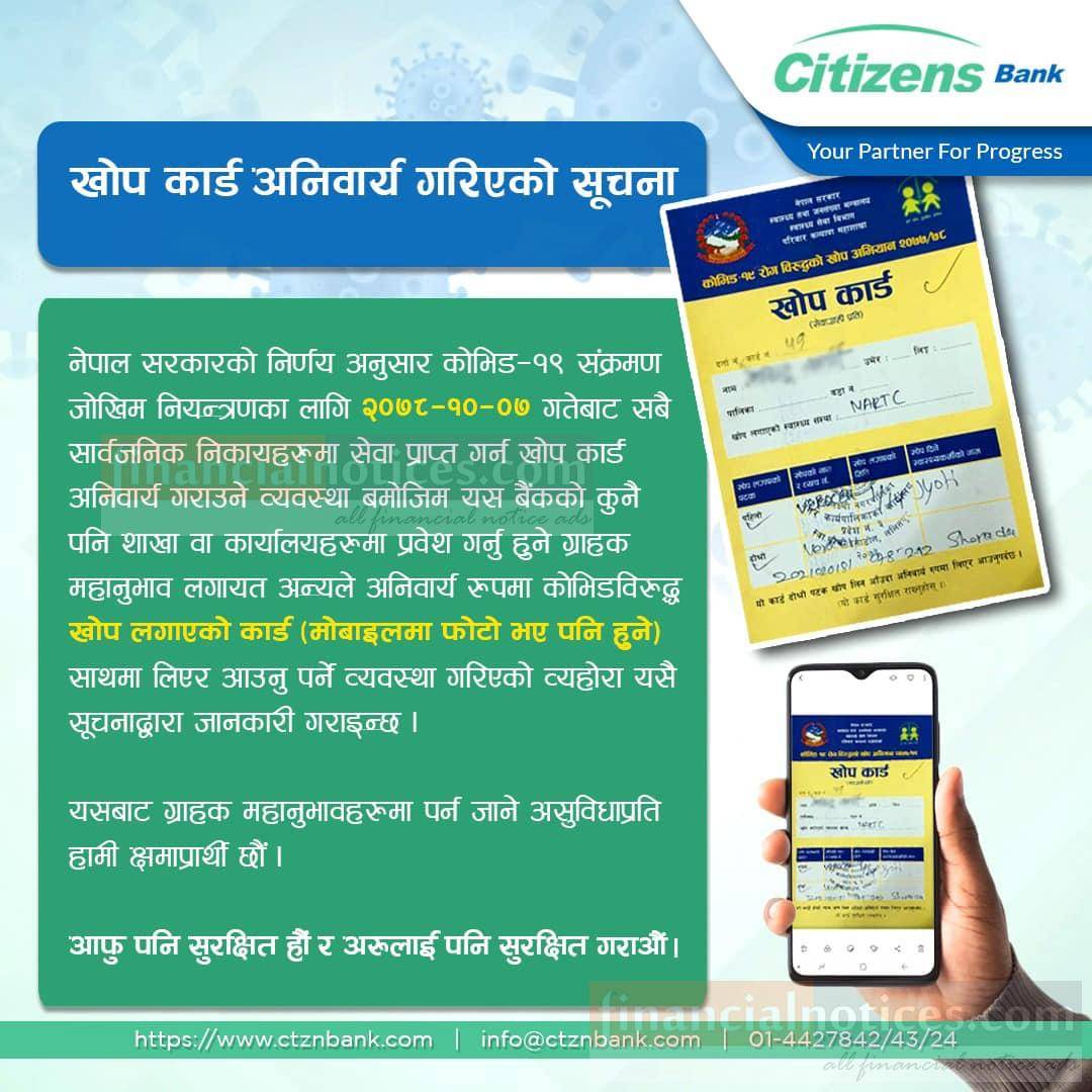 खोप कार्ड अनिवार्य गरिएको सूचना