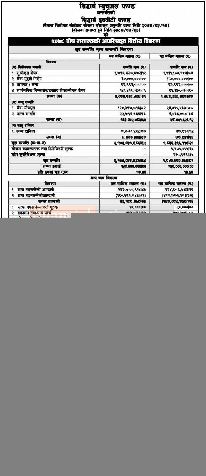 “Siddhartha Equity Fund” Net Asset Value (NAV) till Poush, 2078
