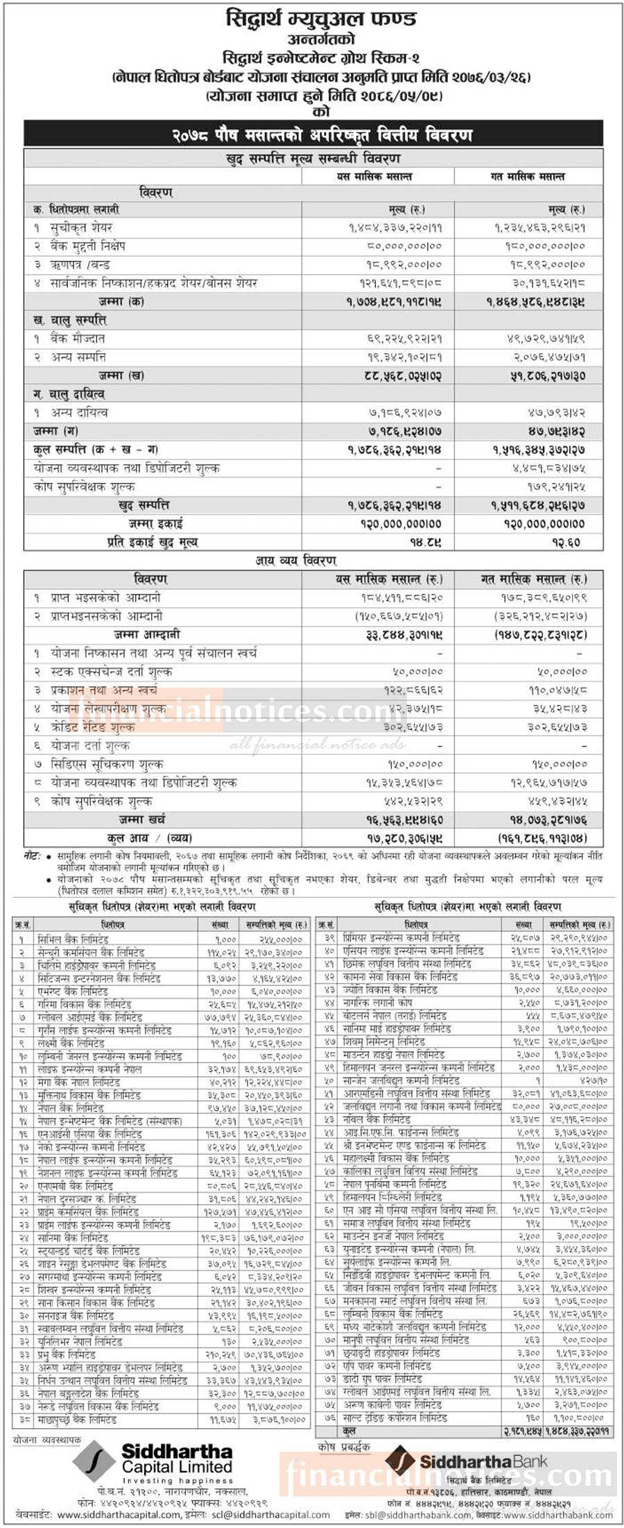 “Siddhartha Investment Growth Scheme-2” Net Asset Value (NAV) till Poush, 2078