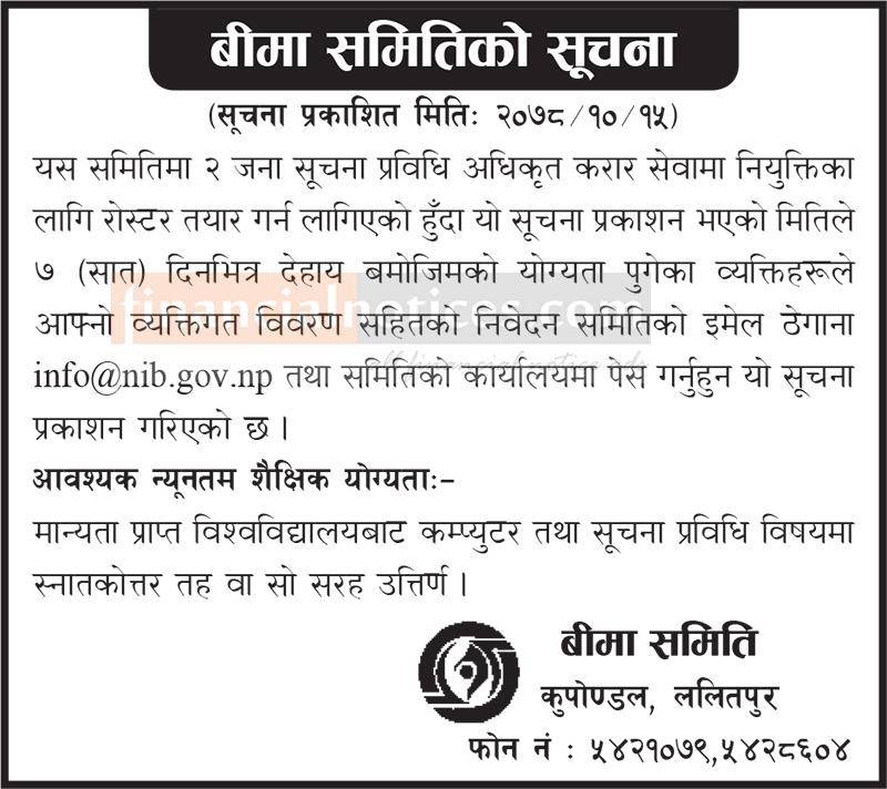 बीमा समितिमा दुई जना सूचना प्रविधि अधिकृतको आवश्यकता