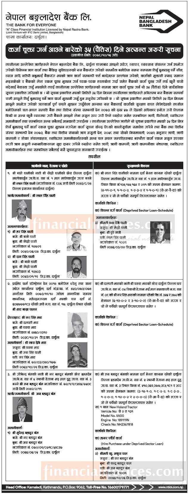 कर्जा चुक्ता गर्न आउने बारेको ३५ दिने सूचना