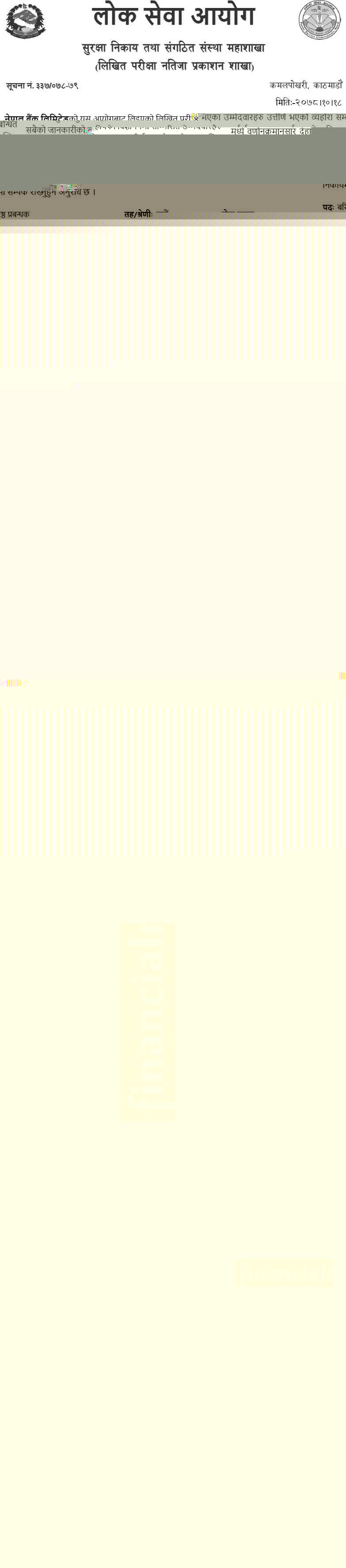 नेपाल बैंक लिमिटेडको तर्फका विभिन्न श्रेणी तथा पदहरुको लिखित परीक्षाको नतिजा प्रकाशन