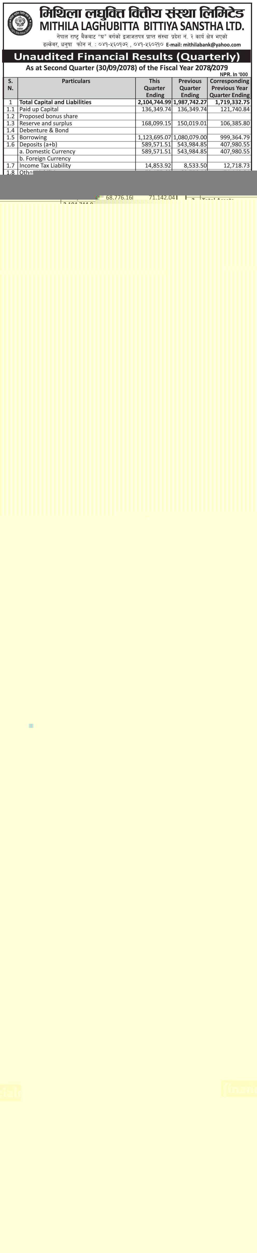 मिथिला लघुवित्तको खुद नाफा ३ कारोड ४६ लाख रुपैयाँ