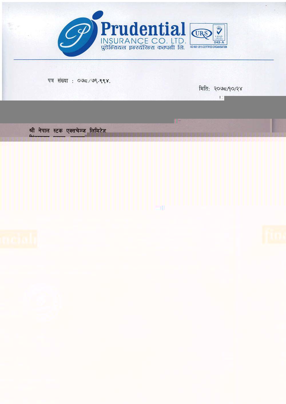 प्रुडेन्सियल इन्सुरेन्सको ७.३६% लाभांश बोनस सेयर घोषणा