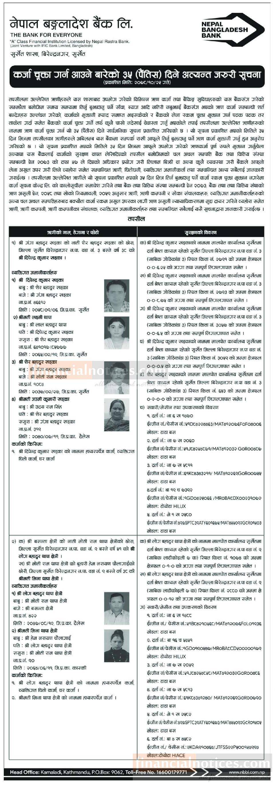 कर्जा चुक्ता गर्न आउने बारेको ३५ दिने अत्यन्त जरुरी सूचना