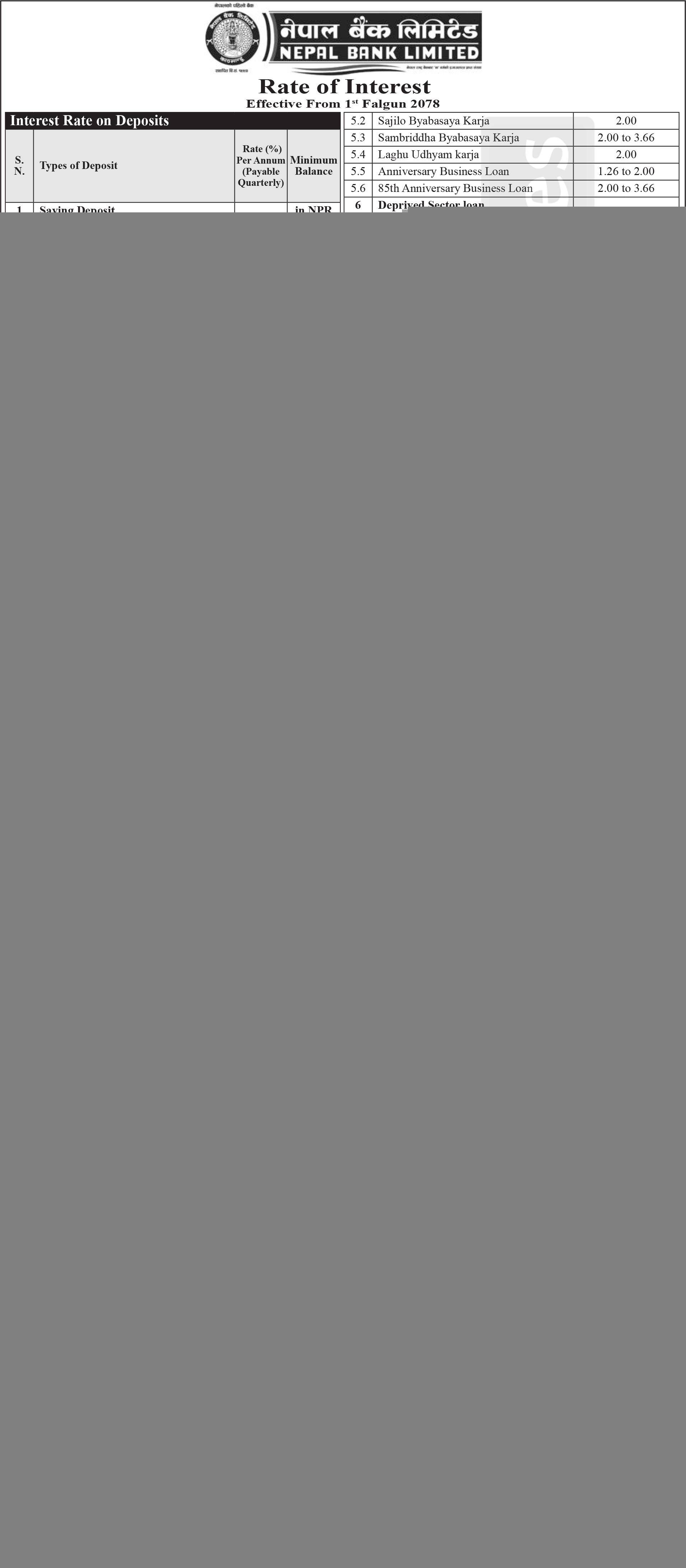 नेपाल बैंकको ब्याजदर परिवर्तन सम्बन्धी सूचना - New Interest Rates -