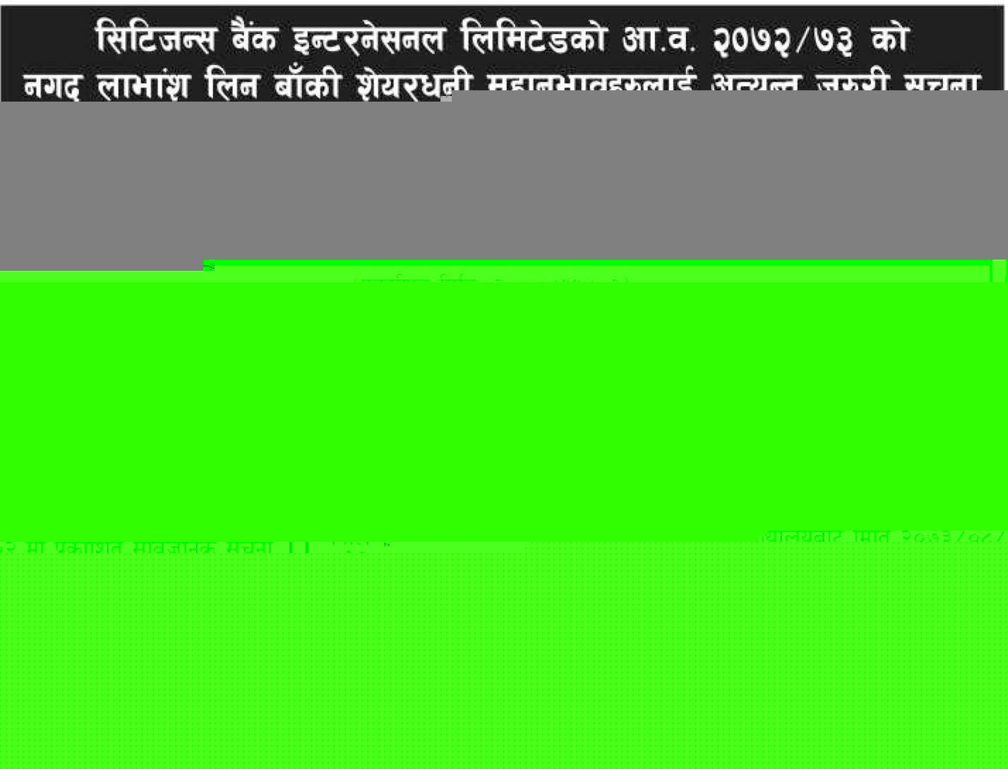 सिटिजन्स बैंकको नगद लाभांस लिन बाँकी शेयरधनी महानुभावहरुलाई अत्यन्त जरुरी सूचना
