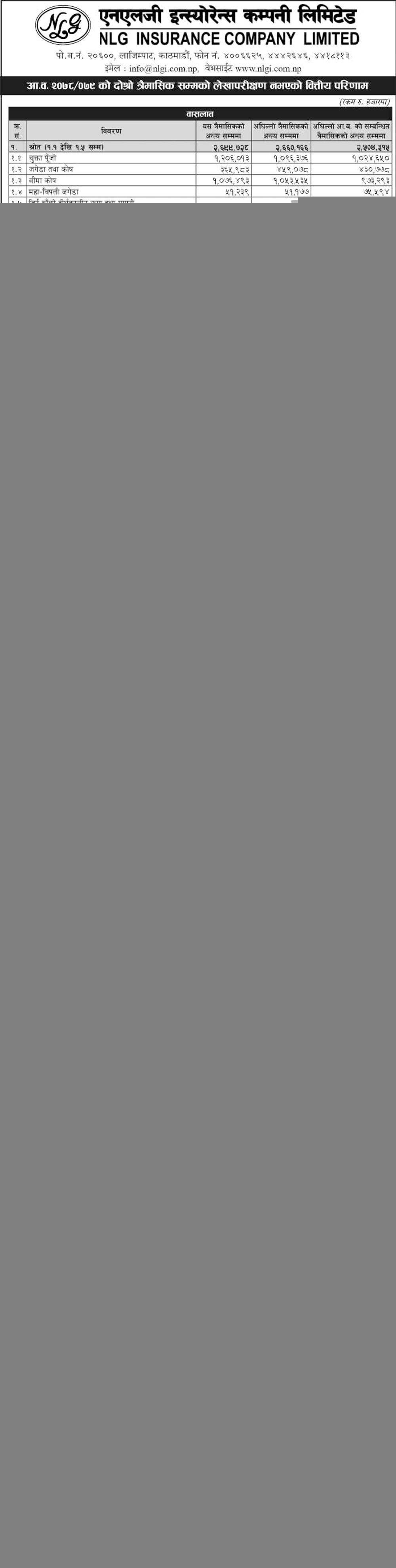एनएलजी इन्स्योरेन्सको मुनाफा १० करोड २९ लाख रुपैयाँ