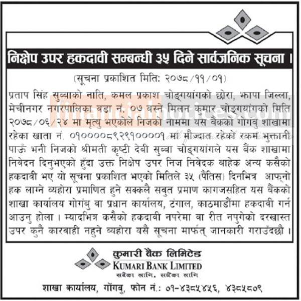 Published by Kumari Bank Ltd (KBL) on 2078-11-01