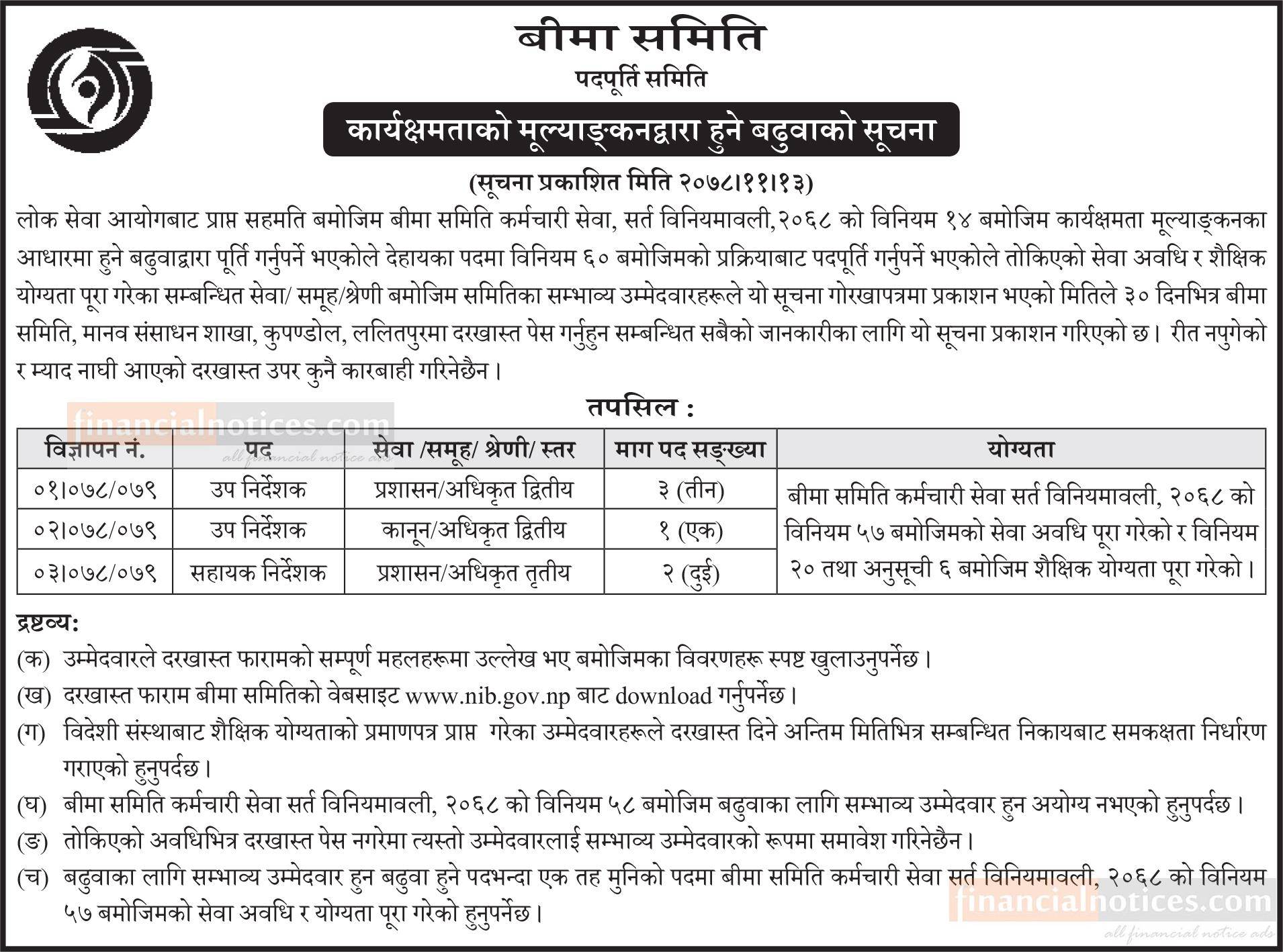 बीमा समितिको कार्यक्षमताको मूल्याङ्कनद्वारा हुने बढुवाको सूचना