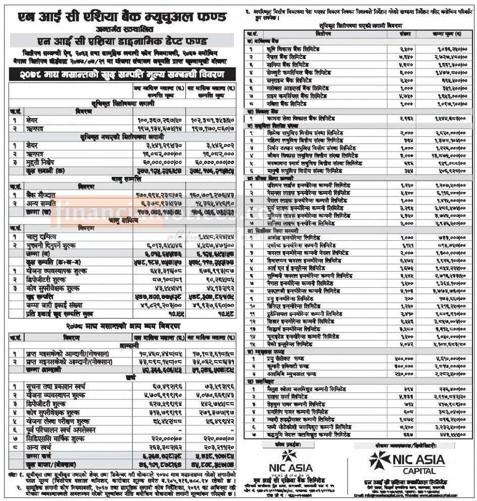 NIC Asia Capital has published 'NIC Asia Dynamic Debt Fund' NAV up to Magh, 2078.