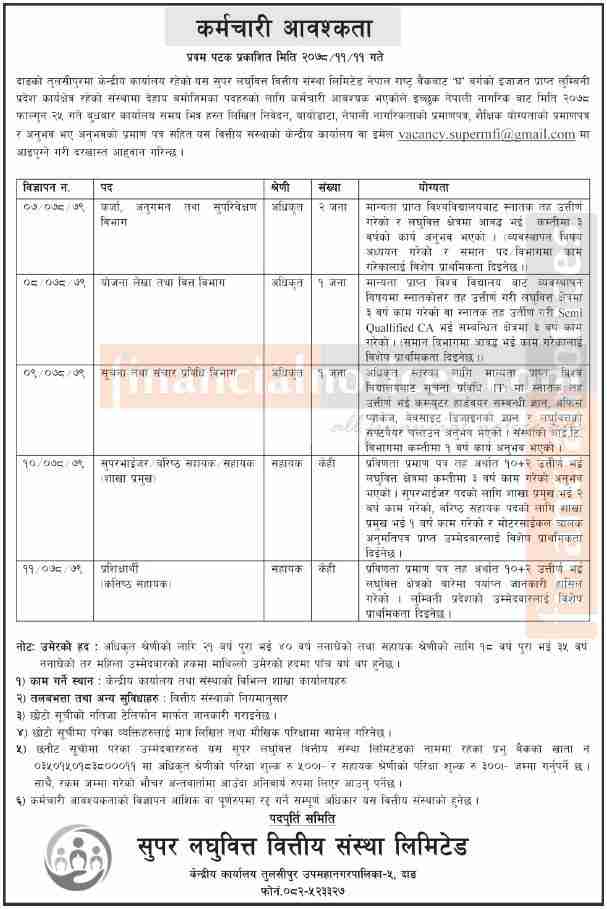 कर्मचारी आवश्यकता सम्बन्धी सूचना - Vacancy