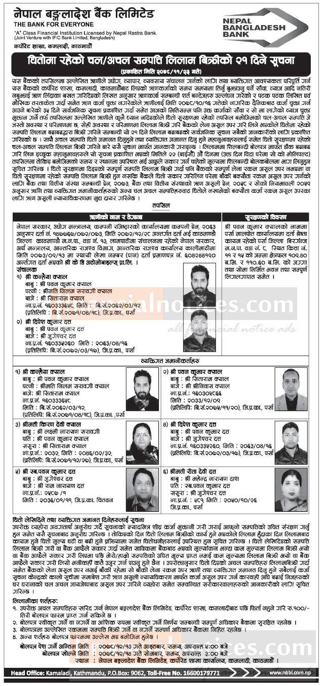 धितोमा रहेको अचल सम्पत्ति लिलाम बिक्रीको २१ दिने सूचना