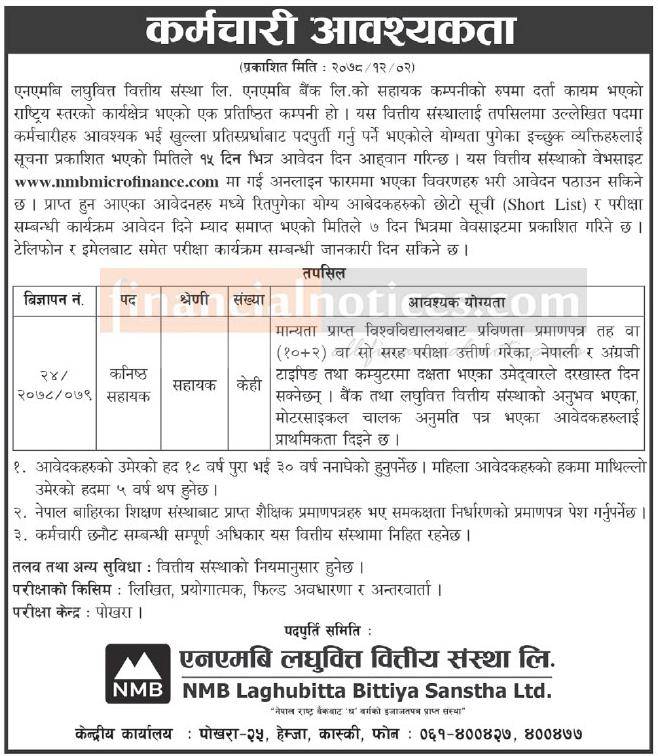 लघुवित्तमा कर्मचारी आवश्यकता - Job Vacancy -
