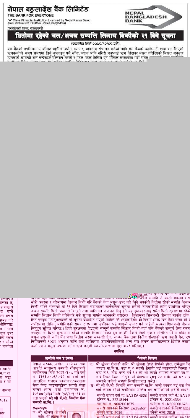 नेपाल बंगलादेश बैंकको धितोमा रहेको चल अचल सम्पत्ति लिलाम बिक्रीको २१ दिने सूचना