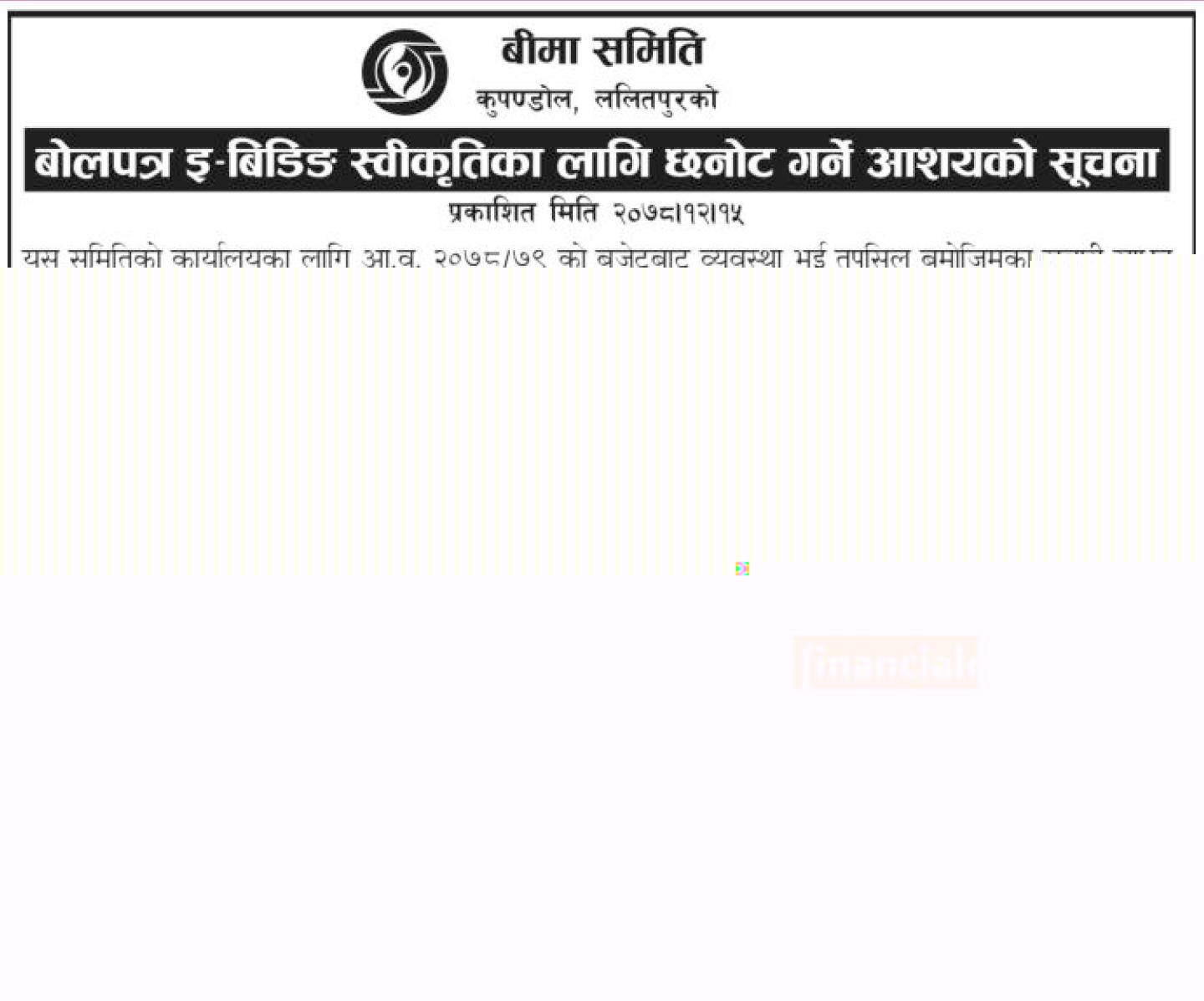 बोलपत्र इ–बिडिङ स्वीकृतिका लागि छनोट गर्ने आशयको सूचना