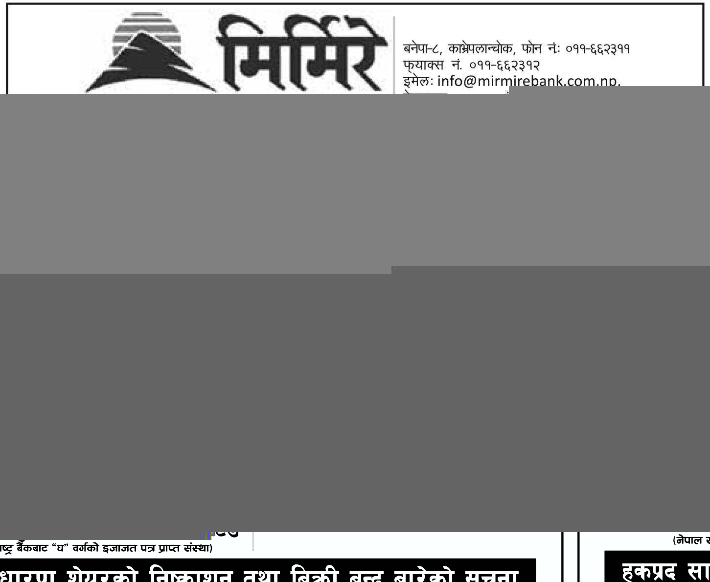 हकप्रद साधारण शेयरको आवेदन दिने अन्तीम म्याद