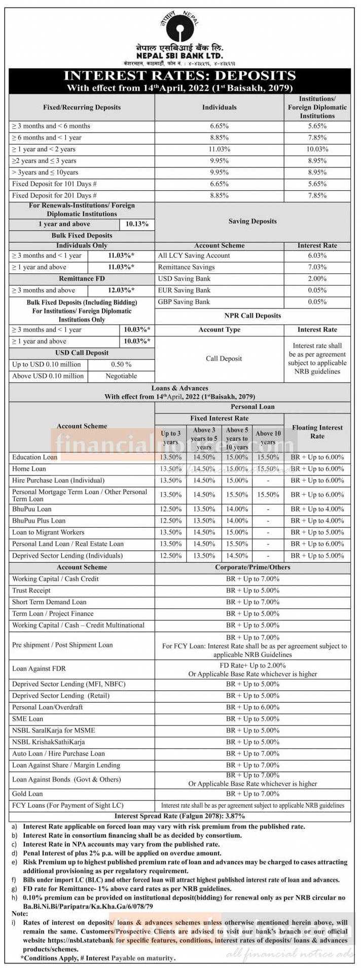 नेपाल एसबीआई बैंकको ब्याजदर सम्बन्धी सूचना