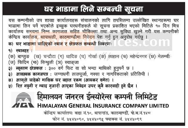 इन्स्योरेन्स कम्पनीको लागि घर भाडामा लिने सम्बन्धी सूचना