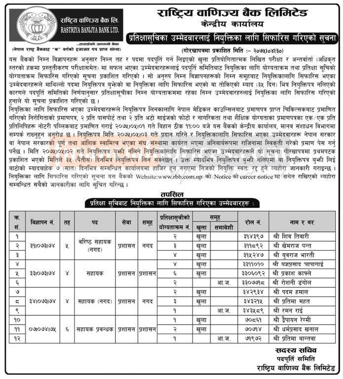 नियुत्तिका लागि सिफारिस गरिएको सूचना